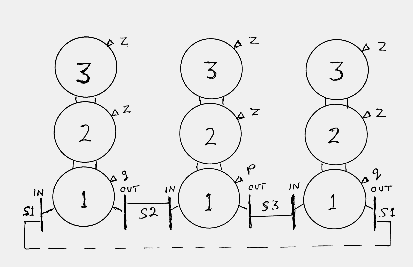 exit side being connected to three rotors representing the reverse current paths