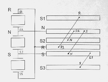 R Steckered to S1 enciphers to S2 Steckered to N at g, N Steckered to S2 enciphers to S3 Steckered to S at p, S Steckered to S3 enciphers to S1 Steckered to R at q. |