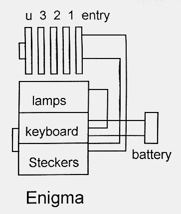 Enigma back to the input of the first Enigma. There is now a physical wired